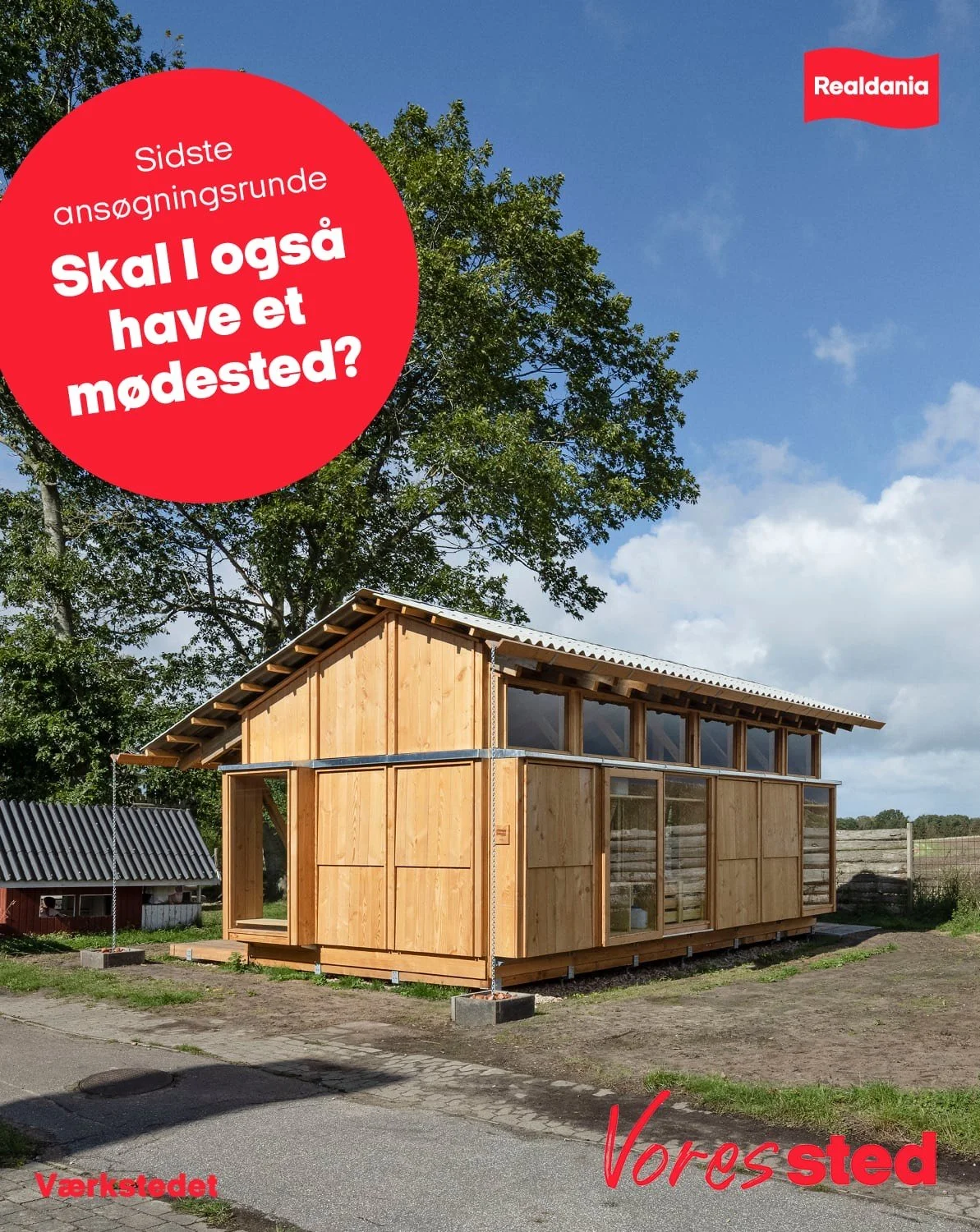 Vi har fået et mødested af Realdania, og byggeriet er planlagt til december i år Et lille fælles værksted på 38 m², der er med til at styrke vores fællesskab. Nu åbner Realdania for den sidste ansøgningsrunde til Vores Sted. Og måske er det jeres fællesskab eller forening, der skal have et mødested næste gang? Ansøgningsfristen er 2. februar 2026. Læs mere og søg på voressted.nu